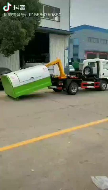车厢可卸式垃圾车采用高新设计可摆的钩臂,一车可带多个大厢,装卸方便,实现车厢的二次吊装并使机构最为省力,具有结构简单,操作稳定方便,高效率装卸,节省人力等优点。钩臂垃圾车可根基用户要求配备若干个垃圾转运箱。转运箱可作为一个简易、美观、环保的垃圾转运站,最大限度提高了车辆的使用效率。